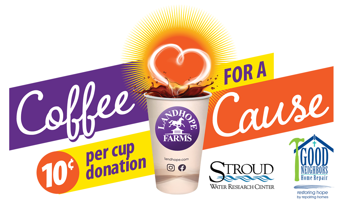 For every cup of coffee purchased in 2026, we’ll donate 10 cents to Good Neighbors Home Repair and Stroud Water Research Center.